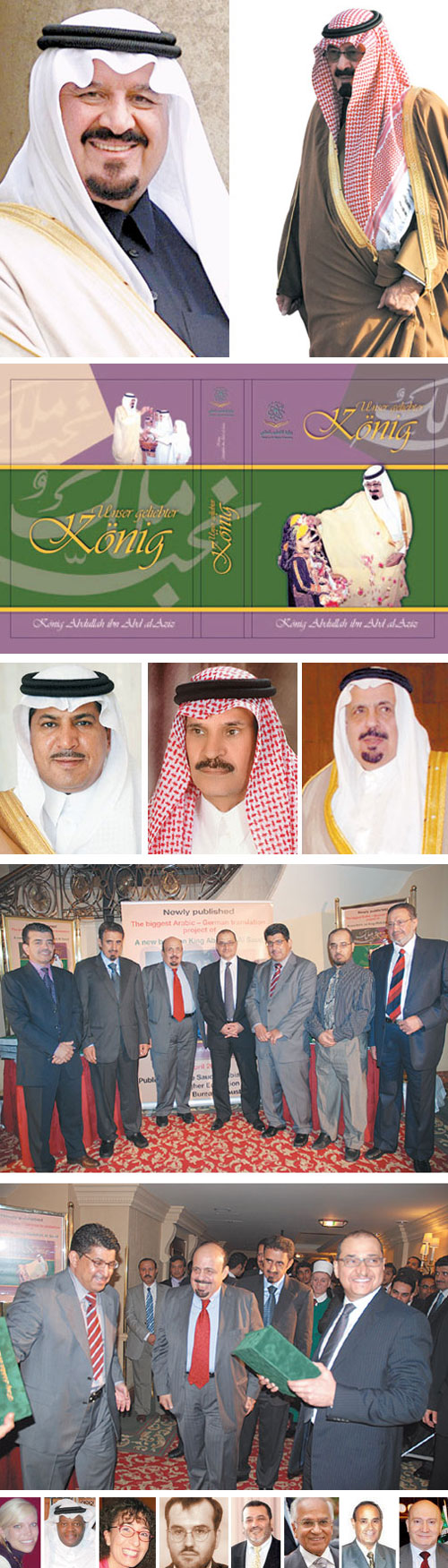 الجدير بالذكر أنّ الكتاب صدر باللغة العربية في 736 صفحة من الحجم الكبير، ويضم في صفحاته صوراً عامةً عن الإنجازات والرحلات التاريخية، وصوراً خاصةً ونادرةً. وقسم الكتاب إلى 8 أبواب، و 39 فصلاً. كما ضم معلومات كثيرة عن الإنجازات التي تحققت في عهد الملك عبد الله حين كان ولياً للعهد وفي عهده كملك للمملكة العربية السعودية. وقد صدر باللغة الألمانية فيما يقارب 689 صفحة. وكان قد خُطط لهذا الكتاب بعد الترجمة والإخراج والطباعة، تزويد الجامعات والمكتبات النمساوية والألمانية بنسخٍ منه، بالإضافة إلى المشاركة به في معارض الكتاب الدولية. خاصة أن اللغة الألمانية تُعد واحدة من اللغات الرسمية العالمية الهامة التي ينطق بها الملايين على مستوى العالم. وقد شهد الكتاب أول إطلالة له في مهرجان الكتاب الدولي ببراغ 2010م خلال الفترة 13-16-5-2010 م. وقد أثنى المستشرقون والمهتمون بالدراسات العربية من الأوروبيين على هذه الخطوة الموفقة في ترجمة مثل هذه الجهود إلى لغات مختلفة.
