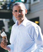 فرَّ الرئيس الأمريكي باراك أوباما وزوجته وابنتاهما من الأجواء الساخنة في واشنطن لقضاء عطلة نهاية الأسبوع في جو أسري في حديقة اكادي الوطنية شمال غرب ماين. |