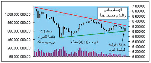 الغريب أن الدولار هابط خلال الأيام القليلة الماضية ومع ذلك لا يرتفع خام نايمكس ويعطي اتجاها واضحا، ومن هنا يصاب المستثمر بامتعاض من مدى إيجابية الربع القادم بعد شهر رمضان المبارك ويظل السوق محيرا جداً للمستثمرين ذوي النفس المتوسط ومنطقي جدا لدى المضاربين المحترفين، أما قائد السوق (سابك) فيحاول تفقد منطقة الثمانينات قبل مغادرتها جنوباً، وبعد دمج حركة التداول لآخر 56 جلسة يرجح أن يغلق السوق عند 6010 نقطة.