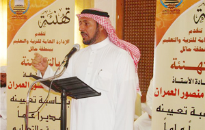 التقى مدير عام الإدارة العامة للتربية والتعليم بمنطقة حائل الأستاذ حمد بن منصور العمران منسوبي تعليم البنين بالمنطقة وخلال اللقاء ألقى المساعد للشؤون المدرسية الأستاذ محمد بن صالح البقوص كلمة رحب فيها بالأستاذ العمران وبارك له ثقة سمو وزير التربية والتعليم وقال ستجدنا إن شاء الله دائما معك في سبيل تحقيق الأهداف المنشودة وإنجاز المهام الموكلة إلى سعادتكم، مؤكداً تسخير جميع الإمكانيات والطاقات التربوية الرفيعة التي تتمتع بها كوادر الإدارة.
