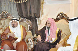 زار صاحب السمو الملكي الأمير الدكتور فيصل بن مشعل بن سعود بن عبد العزيز نائب أمير منطقة القصيم، يرافقة صاحب السمو الملكي الأمير سلطان بن فيصل بن مشعل، الشيخ سليمان بن عبد الله الجار الله في منزله بمحافظة المذنب.