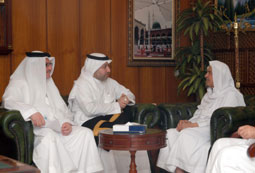 استقبل معالي الشيخ صالح الحصين الرئيس العام لشؤون المسجد الحرام والمسجد النبوي بمكتبه، أمين عام الغرفة التجارية الصناعية بمكة المكرمة الدكتور بسام بن أحمد غلمان، يرافقه عبد المنعم بن عبد الرحمن بخاري مدير إدارة العلاقات العامة بالغرفة. وجرى خلال اللقاء تبادل الأحاديث الودية، وأشاد الدكتور بسام غلمان بالجهود المبذولة في خدمة الحرمين الشريفين وقاصديهما، انطلاقاً من توجيهات ولاة الأمر، حفظهم الله. وقد أعرب الشيخ صالح الحصين عن شكره وتقديره للأمين العام على هذه الزيارة.