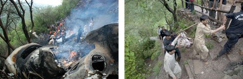 وأضاف «كانت تستعد للهبوط عندما تحطمت على تلال مارغالا». وترتفع سحابة من الدخان من هذه التلال الخضراء التي تحيط بإسلام آباد. وعرضت محطات التلفزيون الباكستانية لقطات لسيارات فرق الإغاثة المتوجهة إلى المكان ومروحيات تحلق فوق المنطقة.