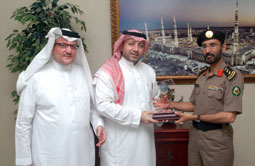قام أمين عام الغرفة التجارية الصناعية بمكة المكرمة الدكتور المهندس بسام أحمد غلمان بزيارة سعادة العميد أحمد بن ناشي العتيبي مدير إدارة المرور بالعاصمة المقدسة بمكتبه. وتم خلال اللقاء تبادل الأحاديث الودية والتطرق لبعض الموضوعات الهامة والتي تتعلق بالمجتمع الاقتصادي بالعاصمة المقدسة، والتطرق لتنظيم حركة السير خلال شهر رمضان المبارك حيث يفد المعتمرون والزوار وتنشط الحركة الشرائية.. وتم التنسيق بهذا الشأن لما فيه خدمة الصالح العام. وفي ختام الزيارة قام الدكتور بسام غلمان بتسليم العميد أحمد بن ناشي العتيبي درع الغرفة بهذه المناسبة.