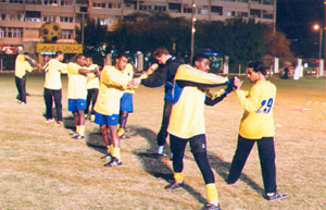 يواصل الفريق الكروي الأول تدريباته في معسكره الإعدادي في القاهرة بحضور جميع اللاعبين وقد شارك في التدريبات اللاعب المقدوني منصور كورتيسي والذي تعرض لإصابة خفيفة أعطاه معها الجهاز الفني راحة لمدة أسبوع مع تدريبات التقوية والعلاج، وقد عمد مدرب الفريق الروماني جورجي ملتسكو على إعطاء اللاعبين تدريبات لياقية ومسبح في الصباح، بينما كانت التدريبات المسائية عبارة عن تدريبات تكتيكية بحتة أوضح من خلالها الأخطاء التي يقع فيها اللاعبون في المباريات الودية.
