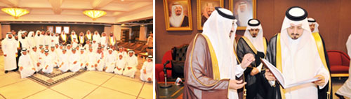 وأكد أمير عسير أثناء الاستقبال في كلمة ارتجلها بأن ديننا دين الوسطية والاعتدال والتسامح وأنتم تعيشون في وطن الأمن والأمان بلد الحرمين الشريفين يجب أن تعرفوا بأن هذه الدولة لم تقم ولم تؤسس بسهولة، ورحم الله الملك المؤسس الذي جاهد أكثر من ثلاثين عاما لإقامة الدولة تحت راية التوحيد متخذا القرآن دستورا لها والحكم بالشريعة الإلهية, مبيناً سموه بأنه يجب أن نفتخر جميعا بأننا ننتمي للمملكة العربية السعودية متمنيا سموه بأن الطلاب المنتسبين للأندية الصيفية قد استفادوا بما يعود عليهم بالنفع والفائدة وتأصيل الوطنية الحقة والوسطية في الدين وتأسف سموه على من يخرج على هذا الإجماع مؤكدا بأن الدولة لن تتهاون مع من خرج وستتعامل معهم بكل حزم جزاء لأعمالهم المشينة من إرهاب وإزهاق للأرواح المسلمة والأعمال التخريبية مؤكدا سموه على الجميع بأنه يجب أن يكون كل واحد منا مسؤولاً عن أمن الوطن وأن نستشعر المسؤولية فيما شكر سموه رجال التربية والتعليم على مايبذلونه من جهود مميزة لرعاية أبناء الوطن والمحافظة عليهم من المزالق المنحرفة. بعد ذلك ارتجل الأستاذ جلوي كركمان كلمة تصدرها بدعم خادم الحرمين الشريفين وولي عهده الأمين وسمو النائب الثاني وسمو أمير منطقة عسير للتربية والتعليم، مؤكدا بأن الدعم شمل صورا عديدة، دعم مالي وتطويري ومشاريع تربوية وتعليمية ومباني مدرسية كلفت المليارات لرعاية وتطوير الطالب السعودي مشيرا إلى أن المراكز والأندية الصيفية انطلقت هذا العام من خلال اثني عشر ناديا بهدف رعاية الطلاب خلال فترة الصيف وتأصيل الوطنية في نفوس الناشئة وتعزيز الانتماء لوطننا وقيادتنا والعمل على تزويدهم بالعلوم والمعارف من خلال الحوار والمناقشة وتقديم مشاريع طلابية وطنية كمسرحيات هادفة وإلقاء ومناشط ثقافية ورياضية، ثم ألقيت قصيدة بالمناسبة وكلمة الطلاب ألقاها عنهم الطالب عبدالرحمن جار الله، وفي الختام تسلم سموه تقريراً عن بينالي عسير الدولي قدمه المشرف التربوي خالد الشهري وتقرير عن الأندية الصيفية قدمه الأستاذ حسن الزيداني وتقرير عن الملتقى الإثرائي الثامن للموهوبين قدمه الأستاذ. عبدالله شويل فيما قدم الأستاذ أحمد حاضر درعا ولوحة فنية لأمير المنطقة.