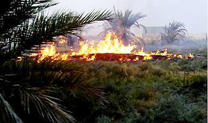 تعرضت عدد من النخيل بمزارع «الجنوبية» بعين بن فهيد بمحافظة الاسياح للاحتراق, وقد ذكر شهود عيان أن الأسباب التي أدت للحريق هي «سيجاره» تم رميها من احد المدخنين واشتعلت من وراءها أشجار النخيل المثمر. و قد كان لشدة الرياح دور في سرعة احتراق عدد كبير من النخيل قبل وصول فرق الدفاع المدني لإطفاء الحريق, وقد نتج من وراء الحريق تلف ثمار النخيل المحترق.