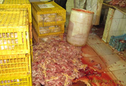 وقد تم العثور على ما يقارب (2000) دجاجة، إضافة إلى المعدات والأدوات المستخدمة في الذبح، التي تشمل أقفاص وسلال الدجاج ونتافات دجاج وقدور غلي دجاج واسطوانات غاز وأقماع لوضع الدجاج بعد الذبح وأكياس بلاستيكية لتغليف الدجاج.