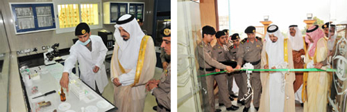 افتتح صاحب السمو الملكي الأمير فيصل بن خالد بن عبد العزيز أمير منطقة عسير ظهر أمس مبنى الأدلة الجنائية بمدينة أبها والذي بلغت تكلفته بما فيه من أجهزة أكثر من 12 مليون ريال وقد كان في استقبال سموه لدى وصوله مدير شرطة المنطقة اللواء عبيد الخماش ومدير إدارة مباحث المنطقة ومدير فرع الاستخبارات في المنطقة وعدد من المسئولين، وفور وصول سموه قام بقص الشريط إيذانا بافتتاح المبنى ثم ألقى الناطق الإعلامي لشرطة المنطقة العقيد عبدالله القرني كلمة ترحيبية قال فيها إن هذه الزيارة تأتي انطلاقاً من حرص سموه على كل ما من شأنه تطور الأجهزة الأمنية في المنطقة، ثم قدم مدير إدارة الأدلة الجنائية العقيد سعيد الشهري عرضا مفصلا عن أهم أعمال الإدارة وشعبها ومهامها شاكرا سموه على هذا التشريف، بعد ذلك قام سموه بأخذ جولة على عدد من المختبرات الجنائية استمع فيها إلى شرح مفصل لما تحويه هذه المختبرات من أقسام وأجهزة متطورة من شأنها ملاحقة الجاني وتتبع أقصى آثاره واطلع سموه مبدئيا على جهاز مجهر الماسح الضوئي ودشن تقنية الفحوص الوراثية DNA يلي ذلك مختبر الاستخلاص وكذا التكبير والفصل وتحليل النتائج بالإضافة إلى مختبرات عديدة كمختبر السموم والكيمياء الجنائية والأسلحة والآلات والفحوص الحيوية والتزييف والتزوير ومختبر المعاينة الفنية ومن ثم دون سموه كلمة في سجل الزيارات بهذه المناسبة.