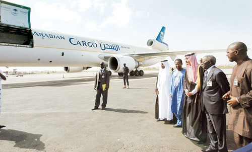 وصلت إلى مطار سنقور الدولي في العاصمة السنغالية داكار طائرة مساعدة سعودية، محمّلة ب(1000) خيمة، لإغاثة متضرّري السيول والفيضانات التي اجتاحت السنغال مؤخراً، وذلك تنفيذاً لتوجيات خادم الحرمين الشريفين الملك عبدالله بن عبدالعزيز آل سعود. وكان في استقبال الطائرة معالي وزير الدولة وزير الداخلية السنغالي بيكاي جوب، وسفير خادم الحرمين الشريفين لدى السنغال عبدالعزيز بن محمد العيفان، حيث قام السفير العيفان بتسليم شحنة الطائرة إلى وزير الداخلية السنغالي، وذلك بحضور عدد من كبار المسؤولين السنغاليين في وزارة الخارجية، ووزارة التعاون الدولي. وأعرب وزير الدولة وزير الداخلية السنغالي في تصريح صحفي عن بالغ شكره وتقديره باسم فخامة الرئيس السنغالي عبدالله واد، وباسم الحكومة، وشعب السنغال، لحكومة خادم الحرمين الشريفين الملك عبدالله بن عبدالعزيز آل سعود، والشعب السعودي، على إعانة المملكة للسنغال ب (1000) خيمة، و(150) طناً من التمور سبق وأن تم إرسالها خلال الأيام الماضية. وأشار إلى أن وصول المساعدات السعودية إلى السنغال في شهر رمضان المبارك لإعانة المتضررين من الأمطار والفيضانات التي اجتاحت البلاد مؤخراً، يؤكد مواقف المملكة الإنسانية مع الشعوب الإسلامية كافة ومنها السنغال، ويبيّن مدى عمق ومتانة العلاقات الثنائية بين البلدين الشقيقين.