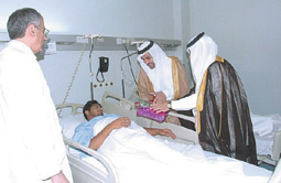 زار محافظ القريات عبدالله الجاسر بمناسبة عيد الفطر السعيد المرضى المنومين بمستشفى القريات العام، واطمأن على صحتهم، وقدّم لهم الهدايا وهنأهم بعيد الفطر المبارك. وقد كان في استقباله مدير مستشفى القريات العام عبداللطيف الخليوي وعدد من الأطباء، ثم تفقد جميع الأقسام الرجالية، وسأل المولى عز وجل لهم الشفاء العاجل، وألا تطول مدة تنويمهم على السرير الأبيض، وهنأ الأطباء وإدارة المستشفى في نهاية جولته على ما يقدمونه من رعاية صحية للمرضى المنومين.