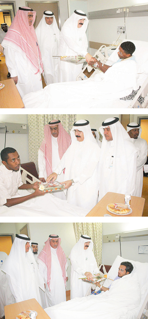 قام الدكتور علي بن سليمان النجاشي، نائب المدير الطبي بمستشفى الملك عبدالعزيز الجامعي، يرافقه الأستاذ عبدالله المسعود المدير التنفيذي لشؤون الخدمات والأستاذ علي الطيار المدير التنفيذي لشؤون المرضى ومدير العلاقات العامة الأستاذ سعد بن خميس والأستاذ خالد الحارثي مدير الأمن والسلامة والأخصائي الاجتماعي الأستاذ سعد العسكر ومجموعة من منسوبي المستشفى بجولة على أقسام المرضى المنومين صباح أمس الأول (أول أيام عيد الفطر المبارك)، وقاموا بالسلام على المرضى وتهنئتهم بالعيد السعيد، وتمنوا لهم الشفاء العاجل وأن يعيد عليهم هذا العيد وهم ينعمون بثوب الصحة والعافية، وقدموا لهم الهدايا وباقات الزهور والمرطبات. وفي الجانب النسائي قامت مديرة الخدمة الاجتماعية الأستاذة نورة الجلاجل بتوزيع الهدايا على المريضات ومرافقيهن. وقد قابل مرضى التنويم هذه البادرة الإنسانية من إدارة المستشفى بالفرحة والسرور، وشكروهم على ذلك. بعد ذلك توجهوا جميعاً إلى قسم طب الطوارئ والإسعاف حيث يوجد مجموعة من المرضى المراجعين وذويهم بطوارئ الكبار والأطفال، وهنئوهم بالعيد السعيد، وقدموا لهم الهدايا وباقات الزهور والمرطبات، وقاموا أيضاً بتوزيع الهدايا وباقات الزهور على أطباء الطوارئ والممرضين والممرضات وأطباء وفنيي التخدير والمختبر والأشعة والعمليات والصيدلية الخارجية وعيادات الرعاية الأولية والسنترال ومنسوبي الأمن والسلامة بالمستشفى العاملين في إجازة العيد، الذين عبروا عن فرحتهم، وقدموا شكرهم لإدارة المستشفى على هذه اللفتة الأخوية وهم يؤدون واجبهم تجاه المرضى في أول أيام عيد الفطر المبارك. بعد ذلك تناول جميع العاملين بالمستشفى والزوار ومرافقي المرضى المرطبات والشاي والحلوى التي أعدتها إدارة المستشفى بهذه المناسبة في جو أسري جميل. وقد تم فتح الزيارة للمرضى من التاسعة صباحاً حتى التاسعة مساءً طوال أيام العيد. هذا، ومن المعلوم أن إدارة المستشفى تقوم بمعايدة المرضى والعاملين في عيدي الفطر والأضحى من كل عام، وتشارك إدارات العلاقات العامة والتغذية والخدمة الاجتماعية الطبية والأمن والسلامة في تنظيم هذه المناسبة.