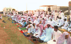 أدت جموع المواطنين بمحافظة الحرث صلاة عيد الفطر المبارك بالقرب من النقطة الأمنية بأم الشيح. وأكّد المواطن محمد زيلعي أن كل ما كان يتمناه المواطنون هو أداء الصلاة في محافظتهم وأن ذلك الطلب ليس صعباً ومن السهل تحقيقه وخصوصاً أنه قد سمح لكثير من العوائل بدفن موتاهم بمقابر المحافظة.