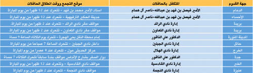 هذا، وقد أعلن مجلس الجمهور الهلالي أماكن انطلاق الحافلات التي ستنقل الجماهير من مختلف مناطق المملكة إلى استاد الملك فهد الدولي وأماكن التجمع على النحو الآتي.
