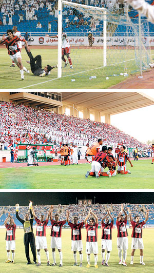 أبهج الفريق الكروي الأول بنادي الرائد أنصاره ومحبيه وعشاقه بالنتائج الإيجابية التي حققها في افتتاحية دوري «زين» السعودي للمحترفين بمستويات فنية مميزة أبهر بها جميع النقاد والمتابعين الذين أدركوا بأنه رائد لا يعرف سوى التحدي ولا يعشق غير الصعاب حول بعزيمة الرجال وهمة الكبار أتراح الماضي إلى أفراح حاضر رسم بسمة عريضة على شفاه عشاق هائمون بحب كيانهم كانوا سعداء بعيدهم إذ إنه حل عليهم وفريقهم يحتل المرتبة الثالثة في سلم ترتيب فرق الدوري بعشر نقاط بعد فوزه في ثلاثة لقاءات وتعادل.