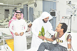 وأضاف أن هذه الزيارة والهدية الرمزية تهدف لوضع ابتسامه على شفاه المرضى وإشعارهم بالفرح بهذه المناسبة.