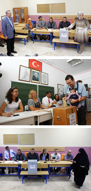 وقالت قنوات الأخبار التلفزيونية إن نسبة التأييد بلغت 58 في المئة مقابل 42 في المئة صوتوا بلا. وبلغت نسبة الإقبال على المشاركة في الاستفتاء 77 في المئة بين 50 مليوناً يحق لهم الإدلاء بأصواتهم. وصوت الأتراك في الذكرى الثلاثين للانقلاب العسكري الذي وقع عام 1980م. وقالت صحيفة صباح الموالية للحكومة «تركيا تنظف عار الانقلاب.» ويخشى معارضون أن يكشف حزب العدالة والتنمية الحاكم عن أجندة إسلامية إذا فاز بفترة ثالثة في السلطة خلال الانتخابات المقررة بحلول يوليو تموز المقبل وأن نفى أردوغان أي خطط للعدول عن السياسة العلمانية الرسمية لتركيا المعاصرة.