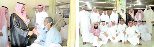 قام محافظ محافظة المذنب المكلّف رئيس لجنة أصدقاء المرضى عبد الله السعوي صباح يوم العيد بزيارة للمرضى المنوّمين بمستشفى المذنب العام رافقه عددٌ من أعضاء اللجنة كل من عبد الله المجماج، وإبراهيم الشتوي، والدكتور شويمان الشويمان، وسليمان الطويرش، وأمين اللجنة عبد الله الطويرش. وكان في استقبالهم لدى وصولهم مدير شؤون المرضى ومدير العلاقات العامة وعدد من منسوبي المستشفى، حيث قاموا بجولة على الأقسام وزيارة للمرضى المنوّمين مقدمين لهم الهدايا، كما نقلوا لهم تهاني وتبريكات سمو أمير المنطقة وسمو نائبه بمناسبة عيد الفطر المبارك، متمنين لهم الشفاء العاجل.