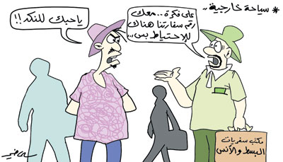 من ناحيته قال صالح محمد: السفر للخارج أصبح من الضروريات للكثير وخاصة في العطلات الموسمية وعلى أبواب العطلة الصيفية يستعد الكثير للتجهيز للسفر ويضطر الكثير أيضاً أن يبيع أشياء تخصه أو يقترض حتى يؤمن ما يحتاجه للسفرية. أنا لست ضد السفر، بل بالعكس، فالسفر له فوائد كثيرة من أبرزها التعرف على عادات وتقاليد لثقافات أخرى أو السفر للعلاج فلا بأس به، ولكن هناك من يسافر للهو وصرف المال في غير محله وما أكثر الذين يتعرضون لابتزازات من ضعاف النفوس الذين أصبح هؤلاء فريسة سهلة ويصطادونهم بسهولة تحت إغراءات الزواج الذي أصبح تحت مسميات كثيرة، أذكر منها الزواج السياحي وزواج المتعة وزواج المسفار وغيرها من أنواع سيتم اكتشافها، فكثيراً ما نرى في صالات المغادرة هؤلاء المسافرين وقد كثرت أحمالهم وعند العودة نراهم خالي الوفاض كثيري الهموم، فمنهم من يتذكر الدين وكيف سيتم قضاؤه والبعض الآخر ينتظر كارثة قد تحل به عند عودته للبيت، والأغلب يفكر متى سوف يستطيع السفر المرة القادمة، وقد نرى البعض ممن يسافر للعلاج ويقعون ضحاياً لسماسرة العلاج ولبعض الأطباء الذين امتهنوا الطب للمادة ليس إلا ولا يراعون الله، وهؤلاء المرضى الذين غُلبوا على أمرهم بل أصبحوا مجرد سلعة يتم المتاجرة بهم وقد وقعوا نتيجة لجهلهم وقلة معرفتهم بتلك البلدان.