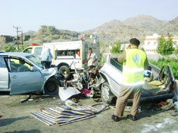 لقي ثمانية أشخاص مصرعهم أمس، فيما أصيب آخرون في حادث مروري مروع نتج عن اصطدام بين سيارتين كامري وكريسيدا وذلك على الطريق الدولي-جدة – العرضية الجنوبية- أبها، قبالة قرية القضية بني رزق، وقد باشرت الحادث الجهات الأمنية من شرطة ودفاع مدني والهلال الأحمر بالعرضية الجنوبية. ويشهد الطريق، وهو مفرد ازدحاما كثيفا خاصة في مثل هذه الأيام مع العودة من الإجازة.