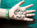 جازان - سجى علاقي في لفتة جميلة تجسد أن حب الوطن وشموخه يشرق في كل جنبات الكيان العظيم وهاهي المرأة وكذلك الفتيات الصغيرات في جازان يسابقن نوارس البحر وأمواجه وهن ينقشن «أحبك يا وطني», «أنا وطني», «روحي فداك يا وطني», «كلنا الوطن» كلمات بمداد الحب تشرق في أيدي الجيزانيات نقشت بالحناء تترجم تفاعل الجميع مع فرحة الوطن >>