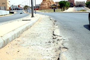 لأكثر من خمسة أشهر وشارع مستشفى الملك سعود في عنيزة يعاني من سوء طبقات الأسفلت نتيجة تأخر أعمال الصيانة والتحسين رغم أهمية الشارع الذي يعتبر أهم شريان يوصل إلى المستشفى، ويبدو الشارع بصورة سيئة للغاية وتظهر فيه بجلاء تصدعات وتشققات واختلال في مستوى سطح الطريق.