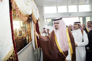 بعد ذلك أزاح سموه الستار عن اللوحة التذكارية وقص الشريط إيذاناً بافتتاح المبنى وتجول في أقسامه.
