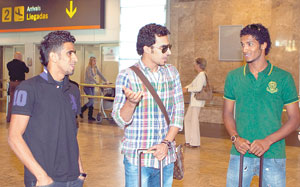 وصل الثلاثي نايف هزازي (الاتحاد) وعبدالرحمن القحطاني (النصر) وعبدالرحيم الجيزاوي (الأهلي) إلى مدينة مدريد الأسبانية ظهر أمس مع فريق عمل من مجموعة الاتصالات السعودية الشريك الإستراتيجي لهذه الأندية وسيتواجد الهزازي والقحطاني والجيزاوي صباح اليوم في تدريب فريق ريال مدريد على أن يلتقون مدرب الفريق البرتغالي مورينهو.