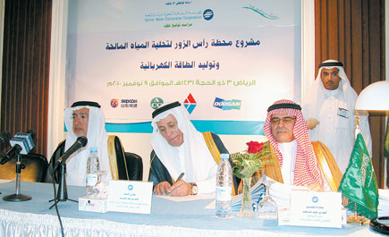 الجزيرة - عبد الله الحصان : أكد وزير المياه والكهرباء أن مدينة الرياض ستحصل على 800 ألف متر مكعب من المياه إضافية يومياً بعد ثلاث سنوات ونصف وقال الوزير خلال توقيع عقدي إنشاء محطة رأس الزور لتحلية المياه المالحة وتوليد الطاقة الكهربائية أن ما يتم توزيعه يومياً من المياه في مدينة الرياض