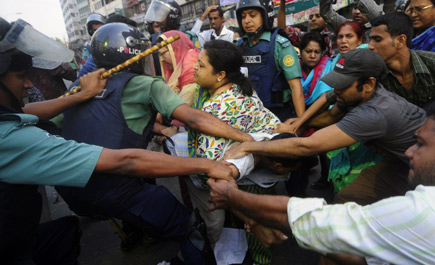 دكا - (رويترز) قال ضباط وشهود إن الشرطة أطلقت الغاز المسيل للدموع على محتجين في دكا عاصمة بنجلاديش أمس الأحد مع تصاعد أعمال العنف السياسي التي تفجرت أمس واستمرت أمس بعد دعوة المعارضة للإضراب العام. وخرج آلاف المحتجين إلى شوارع دكا ومدن أخرى واشتبكوا مع الشرطة بعد طرد الحكومة