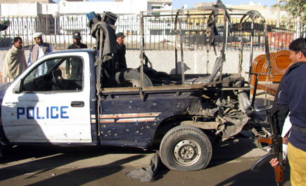 إسلام آباد- بيشاور- وكالات : قتل ستة أشخاص بينهم طفلان أمس الثلاثاء عندما فجر انتحاري قنبلة أمام مركز للشرطة في شمال غرب باكستان، حيث تقاتل قوات الأمن حركة طالبان المرتبطة بتنظيم القاعدة, حسبما أعلنت الشرطة. ووقع الهجوم في بانو المدينة الحامية القريبة من إقليم شمال وزيرستان القبلي.