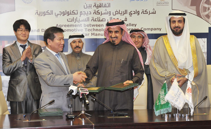 الجزيرة - ناصر السهلي : وقعت جامعة الملك سعود صباح أمس الأحد اتفاقية تعاون مشترك مع شركة ديجم الكورية لصناعة السيارات، ووقع الاتفاقية معالي مدير الجامعة الدكتور عبدالله العثمان والرئيس التنفيذي للشركة الكورية السيد/ يونغ جون, وشهد التوقيع الدكتور توفيق الربيعة مدير عام هيئة المدن الصناعية