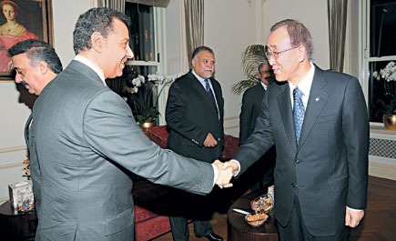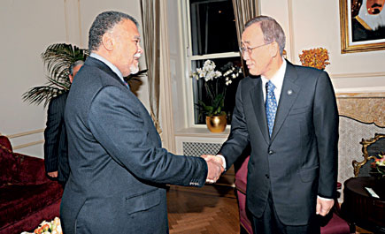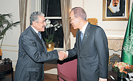 استقبل خادم الحرمين الشريفين الملك عبدالله بن عبدالعزيز آل سعود -حفظه الله- بمقر إقامته في مدينة نيويورك مساء أمس الأول معالي الأمين العام للأمم المتحدة بان كي مون. وقد أعرب معاليه في بداية الاستقبال عن سروره بلقاء خادم الحرمين الشريفين واطمئنانه على صحته عقب العملية الجراحية التي أجريت له ومغادرته للمستشفى بحمد الله متمنياً للمقام الكريم دوام الصحة والعافية.