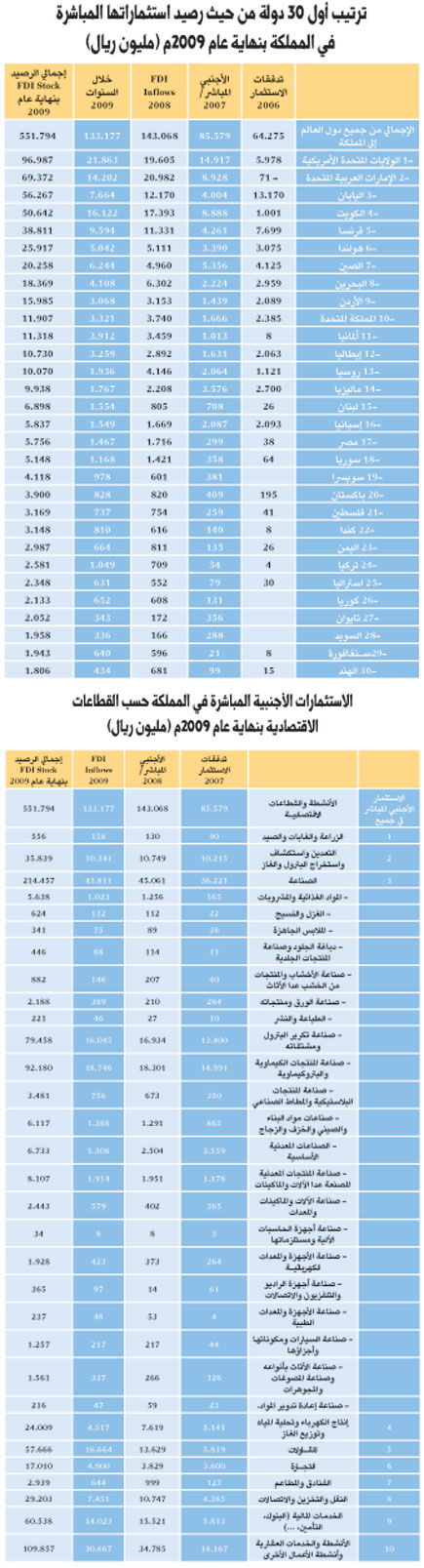 ترتيب المملكة في تقرير الاستثمار العالمي 2010