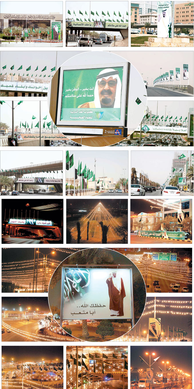 ومضى المهندس العليان قائلاً: إنه تمشياً مع توجيهات صاحب السمو الملكي الأمير سلمان بن عبدالعزيز أمير منطقة الرياض للاحتفاء بهذه المناسبة العظيمة وإبراز مظاهر الفرح ابتهاجاً بمقدم خادم الحرمين الشريفين فقد اتخذت الأمانة خطة عمل لتنفيذ ما هو مطلوب منها وفق متابعة وتوجيه سمو أمين منطقة الرياض د. عبدالعزيز بن محمد بن عياف شملت وضع أكثر من خمسة آلاف علم وحوالي 6000 لوحة بمختلف المقاسات، أما فيما يتعلق بالإنارة فقد تم عمل عقود إنارة في بعض المواقع، منها طريق صلاح الدين إلى القاعدة الجوية وشارع علي عزت وشارع الصفا.