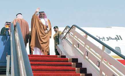 الجزيرة - واس غادر صاحب السمو الملكي الأمير سلمان بن حمد آل خليفة ولي العهد نائب القائد الأعلى بمملكة البحرين والوفد الرسمي المرافق له الرياض أمس بعد زيارته للمملكة استمرت يومين. وكان في وداع سموه بمطار قاعدة الرياض الجوية معالي وزير الدولة عضو مجلس الوزراء الدكتور مساعد بن محمد العيبان...>>>...