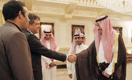 الجزيرة - الرياض: استقبل صاحب السمو الملكي الأمير الوليد بن طلال بن عبدالعزيز آل سعود في مقر شركة المملكة القابضة بعد ظهر أمس السبت لاعبي وأعضاء مجلس إدارة نادي الشعلة الرياضي بمحافظة الخرج، وعلى رأسهم رئيس مجلس إدارة النادي الأستاذ عبدالرحمن بن عبدالعزيز السيف. وقد التقى الأمير الوليد...>>>...