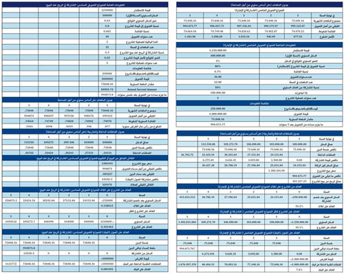فأصبحت عوائد البنك في نهاية الخمس سنوات 8.5% بدلا من 7.5% لو أنه لم يشارك في ربح المشروع وفرض سعر الفائدة غير المخفض. وأما الملاك فقد عاد عليهم المشروع بعائد سنوي مقداره 15.8%. ولو أن نموذج التمويل لم يكن يعتمد على المشاركة لكان عائد الملاك أكبر (ويعتمد على نوع النموذج من النماذج الأربعة التي ذكرناها الأسبوع الماضي). والجدول الثاني يوضح الدفعات والطريقة التي يحسب بها هذا الموديل بصورة مبسطة وخالية من التعقيد. وفي هذا كفاية لهذا الأسبوع إلا أنني سأعرج سريعاً على معلومات هنا لم نتطرق إليها في تفصيل النماذج وهي إلى أي مدى يكون الاعتماد على التمويل أربح للملاك من الاعتماد على المشاركة في الأصول. وهذا يحتاج إلى حلقتين مستقلتين ولكن على عجلة هنا، أننا لو تأملنا في الجداول لوجدنا أنك هناك ثلاثة مقاييس للعوائد. الأول العوائد على الملاك والثاني العوائد على المشروع ككل والثالث العوائد على البنك أو الممول. والقاعدة هو (بافتراض ثبات المخاطر) أنه كلما كان العائد على المشروع أقل من العائد على الممول فإن الاستزادة من التمويل سترفع العوائد على الملاك ونقطة التوازن هي عند مساواة عوائد المشروع بعوائد البنك أو الممول. وعند التفصيل يجب حساب الزكاة والضرائب ولكنها ندعها في وقتها، ونلتقي الأسبوع القادم لنكمل النماذج التمويلية.