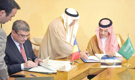 اجتمع صاحب السمو الملكي الأمير سعود الفيصل وزير الخارجية في الرياض أمس مع معالي وزير خارجية جمهورية رومانيا: تيودور باكونسكي. وبحث الاجتماع الأوضاع في المنطقة والعلاقات الثنائية بين البلدين وسبل تطويرها في المجالات كافة. وشهد نهاية الاجتماع التوقيع على مذكرة تشاور >>