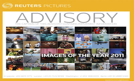 بدأت منذ أمس وكالة الأنباء العالمية (رويترز) ببث صور هي حصاد أجمل لقطات أحداث هذا العام الذي يقترب من دخول شهره الأخير، في مختلف الأحداث السياسية أو الفنية أو الرياضية وأحداث أخرى نسميها طريفة، فيما طغت صور أحداث الربيع العربي على معظم صور هذا الحصاد الذي يتوالى تباعاً خلال اليومين المقبلين، حيث تم