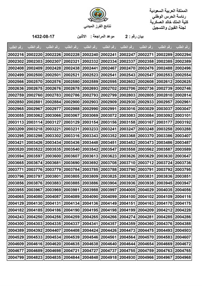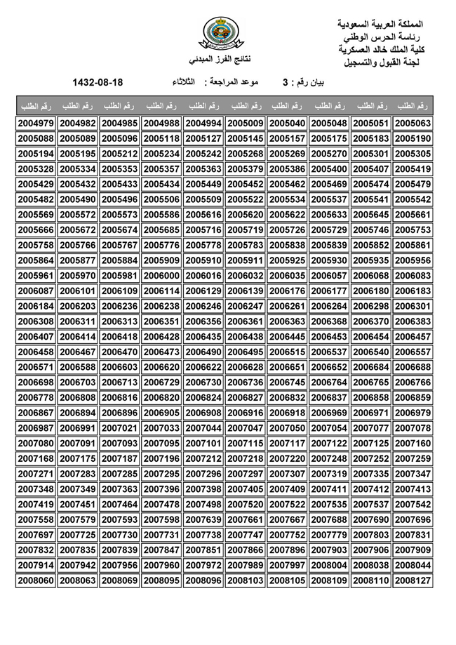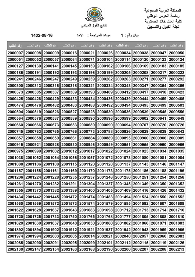 وفيما يلي بيان بأرقام الطلاب المقبولين مبدئياً ومواعيد