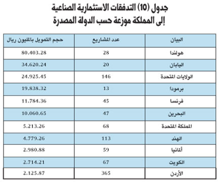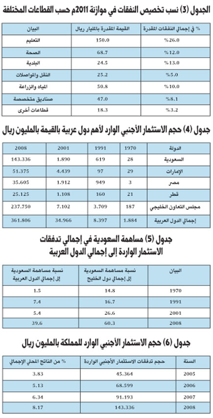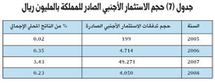 أما على مستوى الدول العربية تعتبر المملكة حاليا على رأس قائمة الدول الجاذبة للاستثمار الأجنبي المباشر من حيث قيمة التدفقات، ففي حين وصلت هذه القيمة إلى حوالي 143.3 مليار ريال في نهاية عام 2008، فإنها لم تزد عن حوالي 51.4 مليار ريال لدولة الإمارات العربية المتحدة، ونحو 35.6 مليار ريال لجمهورية مصر العربية، وهما من كبريات الدول العربية الجاذبة للاستثمار الأجنبي. بل تساهم المملكة العربية السعودية وحدها بحوالي 60.3% من إجمالي تدفقات الاستثمار الأجنبي إلى دول مجلس التعاون، وتساهم بنحو 39.6% من إجمالي هذه التدفقات إلى الدول العربية قاطبة، وذلك حسب إحصاءات الاستثمار الأجنبي المباشر الواردة والصادرة عن المؤسسة العربية لضمان الصادرات.