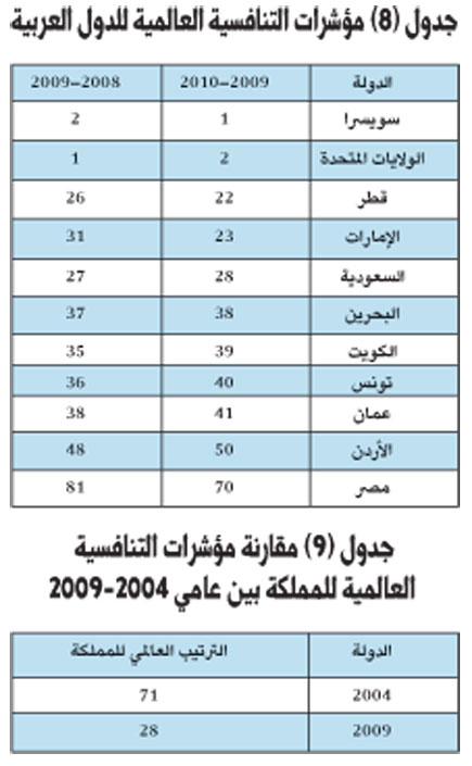 لقد احتلت المملكة العربية السعودية المرتبة (28) في الترتيب العام لمؤشر التنافسية العالمية لعام 2009-2010، والتي بها احتلت المرتبة الثالثة في دول الخليج بوجه خاص والدول العربية بوجه عام، ويرجع ذلك إلى التحسن الذي شهدته عدة قطاعات اقتصادية بها خلال السنوات الأخيرة من بينها قطاع الاستثمار، والتعليم والصحة، والقطاع المالي وقطاع البيئة القانونية والعدلية.
