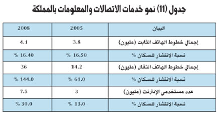 يصل عدد مشتركي الهاتف الثابت على مستوى المملكة حتى نهاية عام 2008م حوالي 4.1 مليون مشتركاً. في حين يصل عدد مشتركي الجوال إلى ما يزيد عن 40 مليون خط.