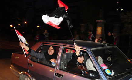 تدفق مئات الآلاف من المصريين من كافة الاطياف على ميدان التحريرالذي كان مركزا للاحتجاجات المطالبة بإسقاط النظام المصري، وعلى رأسه مبارك ورموز الحزب الوطني الحاكم على مدار 18 يوما، كان «ختامها مسك»، بحسب وصف احد المتظاهرين، حيث تنحى مبارك عن منصبه. انضمت الوفود المتدفقة إلى مئات الآلاف من المحتجين الذين شاركوا في المظاهرات منذ الصباح الباكر وعقب صلاة الجمعة في مشهد ضم كافة أطياف الشعب المصري وكافة الانتماءات السياسية والفئات العمرية مسلمين وأقباطا. واحتفلت جماهير الشعب التي امتلأت بها الشوارع والميادين في احتجاجات غير مسبوقة شهدها الشارع المصري على مدى الاسبوعين الاخيرين. عقب تخلي الرئيس حسني مبارك عن السلطة وردد مئات الآلاف ممن تجمعوا في ميدان التحرير بوسط القاهرة حيث بؤرة الاحتجاج الرئيسية «الشعب خلاص أسقط النظام .. الشعب خلاص أسقط النظام» في عرض لقوة الشعب لم يسبق له مثيل في تاريخ مصر الحديث. ولوح المحتجون بالأعلام وبكوا وابتهجوا وتعانقوا عندما اذيع النبأ عبر نظام الاذاعة الداخلية الذي أقامه المحتجون في التحرير. وتدفقت السيارات على شوارع القاهرة والاسكندرية ثاني اكبر المدن المصرية. وأطلق قائدو السيارات العنان لأبواق سياراتهم ولوحوا من نوافذها. وهلل المحتفلون في ميدان التحرير الذي تحول الى بحر من الأعلام المصرية وهتفوا قائلين «الله أكبر». وسلم مبارك السلطة للجيش منهيا ثلاثة عقود من رئاسة اكبر البلدان العربية سكانا. وصافح المحتجون الذين كانوا يتظاهرون أمام مبنى التلفزيون المصري مع الجنود الذي انتشروا هناك لحماية المبنى وقفز بعضهم فوق الدبابات.