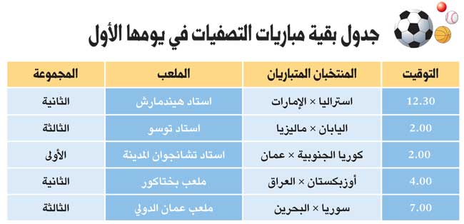 تنطلق مساء اليوم الأربعاء مباريات للتصفيات النهائية المؤهلة لأولمبياد لندن 2012 بإقامة ست لقاءات، ويدخل منتخبنا الأولمبي هذه التصفيات ضمن المجموعة الأولى التي تضم إلى جانبه كلا من: قطر وعمان وكوريا الجنوبية.. لقاء الافتتاح سيستهله منتخبنا أمام المنتخب القطري الشقيق على أرض استاد الملك فهد الدولي بالرياض في تمام الساعة الثامنة والربع في أولى مواجهاته نحو التأهل بمشيئة الله إلى العاصمة البريطانية لندن ليعلن عن التأهل الثالث في تاريخ الأخضر الأولمبي بعد تأهله لأولمبياد لوس أنجلوس 94 وأولمبياد أتلانتا 96، وتأهل الأخضر عن الدور الثاني بفوزه في لقاءي الذهاب والإياب على فيتام ذهاباً 2-0 وإياباً 4-1.