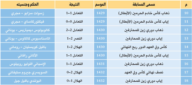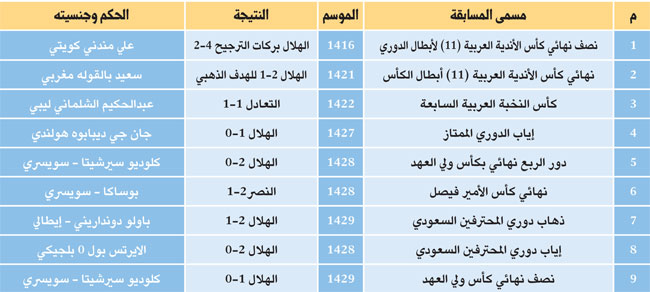 على مدار تاريخ مواجهات الهلال والنصر محلياً وخارجياً تواجد الحكم الأجنبي بـ 18 لقاء.