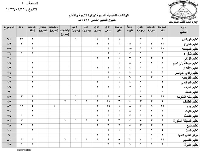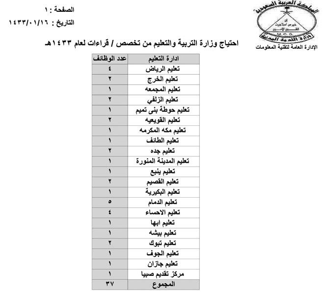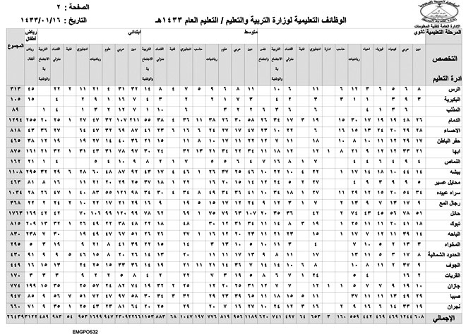 - (23.317) وظيفة تم تخصيصها للتعليم العام بزيادة بلغت (2.317) تمثل الوظائف المتبقية التي تعذر شغلها خلال الإعلان الماضي.
