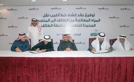 الجزيرة - الرياض : وقَّعت شركة معادن للذهب ومعادن الأساس المملوكة بالكامل لشركة «معادن» أمس عقداً مع شركة خدمات المعادن للتجارة والمقاولات، بتكلفة إجمالية تصل إلى 464 مليون ريال؛ لإنشاء أطول خط أنابيب لنقل المياه المعالجة في العالم، بطول 430 كيلومتراً، وبسعة ثلاثة عشر ألف متر مكعب يومياً؛