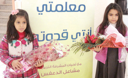 حائل - عواطف اليوسف: احتفل مكتب التربية والتعليم بحائل شرق بيوم المعلم وذلك بالمدرسة الثانية والأربعون للبنات، بدأ الحفل ببرنامج إذاعي تضمن عددا من الكلمات والأبيات الشعرية التي تتحدث عن المعلم ودوره في المسيرة التربوية كما تضمن العديد من الأناشيد التي تعبر عن حب المعلم والمعلمة، وتحدثت
